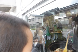 調理室の中には衛生管理上入れないので、窓から見ました。