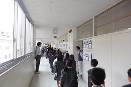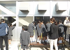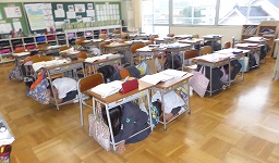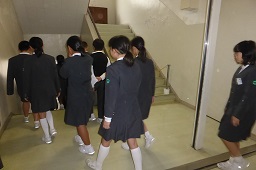 地震が発生、その後津波が来るという想定です。全員が3階の決められた場所へ避難しました。