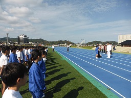 マリンタウン陸上競技場で校内マラソン大会を行いました。