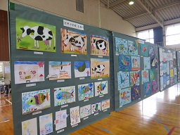 10月28日から29日に鳳至小学校 体育館で輪島市地区の児童・生徒文化の日作品展が行われました。市内の小中学校の作品と一緒に、河井小学校の児童の思い思いの作品を市民の方々に見てもらいました。
