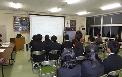 15:00より 集会室 風でスクールフォーラムを行いました。学校の様子を説明しました。