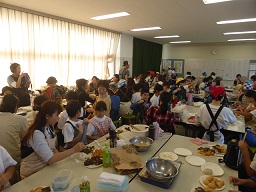 3,4時間目に、スイートポテトとさつまいも入り蒸しパンを作りました。それらを、5限目に味わいながら、歌や合奏でお祭りをしました。
