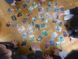 今年のテーマを決めて下絵を描きました。その絵を25枚に分割してみんなで彫ります。