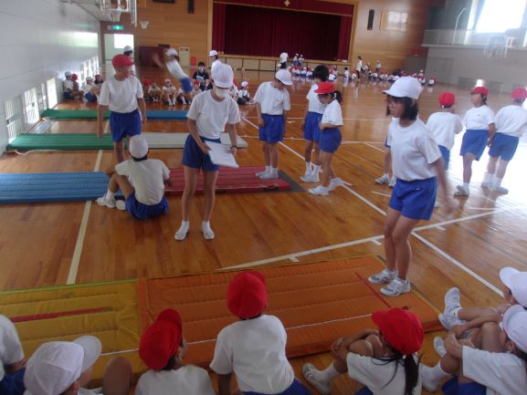 6月5日(水)3限目にたてわり仲良し会が開かれました。今回は、金曜日に行われるスポーツフェスタの練習会でした。各班毎に6年生が中心になってボール投げ、上体起こし、長座体前屈、立ち幅跳びの練習を行いました。低学年には、特に丁寧に説明を行っている姿がとても印象的でした。