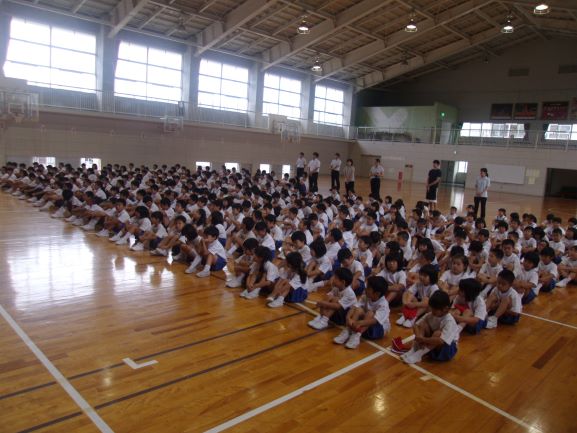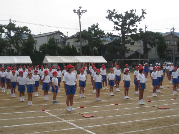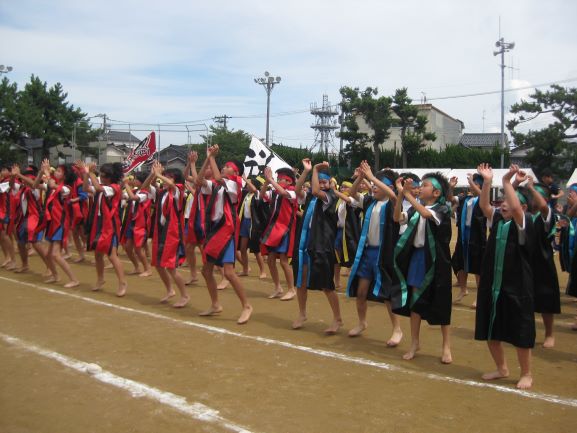 また当日は,最高気温32度が予想され,熱中症が心配された運動会でもありました。運動会開始時刻を早め,テントに日よけを設置,開会式の見直し,競技の削減など,少しでも子どもたちの負担が減るように工夫いたしました。救護テントには,暑さで体調を崩した児童が何人かきましたが,無事回復し競技に復帰していきました。大変心配していましたが,元気に回復し活躍する姿を見せてくれて安心しました。