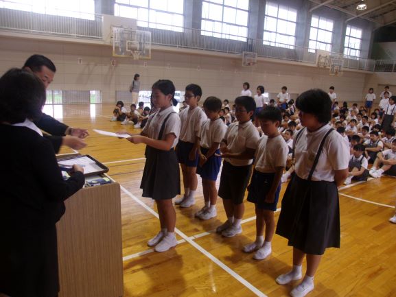 また今日は、9月に教育実習を行う山﨑教育実習生の紹介式と表彰式も併せて行われました。