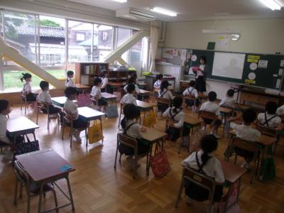 今朝の1年生教室の様子です。とても良い姿勢でお話を聞いています。