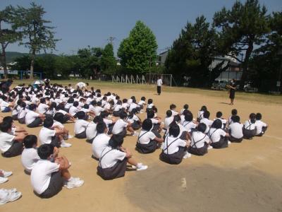 6月3日(水)5限目に全校集会が開かれました。3密にならないように、間隔、換気、短時間を目標に行いました。集会では、各委員会より活動目標などについての報告がありました。次に代表委員会から今月の目標について、実例を挙げながら大変わかりやすい話がありました。委員会の報告も代表委員会からのお知らせも大変ビシッとした態度で素晴らしいものでした。
