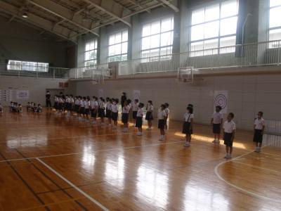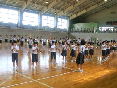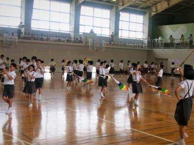 河井小金管鼓隊校内発表会が開かれました。