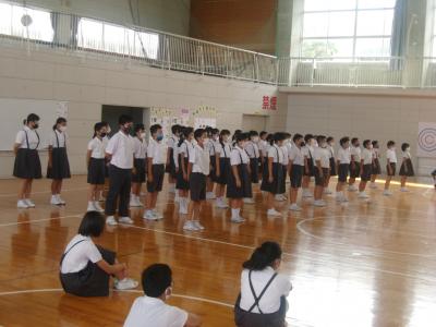 9月9日(水)5限目に河井小金管鼓隊TEAM2020の校内発表会が開かれました。新型コロナウイルス感染防止の影響で6月の輪島市民パレードは中止になりましたが、10月10日(土)に開催されます河井・鳳至合同発表会に向けて練習を重ねてきた成果の披露でした。全校集会の校内発表を兼ねて行われたもので、委員会からのお知らせを行い、5・6年生の発表でした。1~4年生までが体育館2階ミーティングルームに上がり、全フロア―使ってのパフォーマンスです。今年度の演奏教曲は、「校歌」とLittle Glee Monster の『世界はあなたに笑いかけている』の2曲です。大変素晴らしい演奏でした。更に演奏だけでなく、姿勢、足の上げ方、手の振りなど大変素晴らしく、心が1つになっているということを実感できる演奏でした。新型コロナによる学校休校や運動会練習と重なりながらも、感染対策をとりながら地道にコツコツと個別に練習をしてきた成果です。10月の発表に向けて更に練習を重ね、TEAM2020の頑張る姿を後輩たちに見せてあげて欲しいです。まさに河井の伝統です。頑張れ5・6年生!