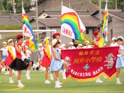 10月10日(土)に金管鼓隊合同発表会が開かれました。午前中は、学校で出発式とドリル演奏が行われ、その後パレードに出発しました。今回の金管鼓隊合同発表会は、新型コロナウイルスの影響で中止になった輪島市民まつりパレードに代わるものとして、「子どもたちの発表の場を!」ということで河井・鳳至両小学校で協議して開催することになりました。当日は、たくさんの保護者・地域の方々に応援して頂き、河井小金管鼓隊チーム2020の活動を締めくくることができました。一生懸命演奏し、足をあげ手を振る姿は、保護者の皆様、地域・市民の皆様に元気をプレゼントすることができたのではないかと思っております。6年生は、これで金管鼓笛は終了しますが、後輩たちが素晴らしい鼓笛演奏の伝統を引き継いでくれると確信しております。