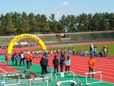 11月3日(火)の祝日に、石川県立陸上競技場特設周回コースで、第15回いしかわっ子駅伝交流大会が開かれました。各地区の予選を通過した男女各25チームが健脚を競いました。河井小学校チームは、奥能登から唯一アベック出場を果たし大健闘しました。