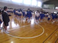 11月10日(火)の13:30より、8の字跳び大会に向けての練習会を行いました。8の字跳び大会は、縦割り班対抗戦で行うため、縦割り班のチームでの練習です。今年度初めての練習会のためか、初めはなかなか上手に跳べない低学年の児童もいましたが、高学年の児童がアドバイスをしたり、入るタイミングで背中を押してあげたりするなど、それぞれの班で工夫が見られました。6年生が、とてもやさしく教えている姿が印象的でした。8の字跳び大会までに、あと2回の合同練習会が行われます。尚、体育の時間に、それぞれの学年で練習しているので、上手な児童がたくさんいました。