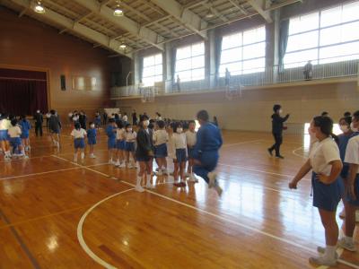 11月17日(火)の5限目に、たて割り仲良し班対抗8の字跳び大会が開かれました。8の字跳びは、これまで学級の体育やたて割り班活動で練習を重ねてきました。その成果を発揮する大会です。練習時から6年生が中心になり1年生や跳べない児童を上手にフォローする姿が見られ、大会当日もたくさん素敵な場面を見ることができました。優勝を目指したり、チーム最高記録を目指したりと、各班の目標はそれぞれでしたが、みんなで協力して行う姿が見られる素晴らしい大会となりました。大変楽しかったですね。