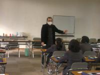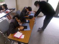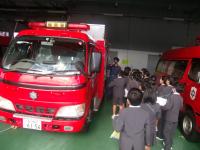 11月24日(火)の3・4限目に3年空組が消防署見学に行って来ました。(コロナ禍ということで、海組と空組は別日に分けて見学をします。海組は、27日の予定です。)消防署では、いろいろな部屋を見学し、消防自動車を間近に見ることが出来ました。新型コロナウィルス感染防止の為、見学できる範囲は制限されていましたが、教科書で学習した内容を、本物を見ながら確認することができました。子どもたちは、それぞれの見学場所でしっかりメモをとり質問しながら学習していました。途中で、本物の出動指令がでて、説明担当の方が出番になって行かれましたが、1分以内に出動して行きました。あまりの素早さに、子どもたちはびっくりです。「1分かからずに出たよ」「すごい早かった。」交代の説明の方がおいでになり説明をして頂きましたが途中で、ドクターヘリが来ることになり、見学は終了しました。消防署員の方のテキパキとした素早い連携した動きが印象的で、子どもたちは現場に張り詰めた緊張感を感じとったようです。教科書では、理解できないリアルな消防署を体感することができました。
