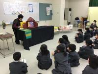 低学年人権集会は、12月3日に行われました。元教師の倉田幸子先生と山下ひな子先生に訪問して頂き、手遊びや本の朗読・紙芝居・詩を紹介しながら、「身体に障害をもたれている方への理解」「身体の外見で人を判断をししないで」など低学年に大変わかりやすく、人権についてのお話をして頂きました。