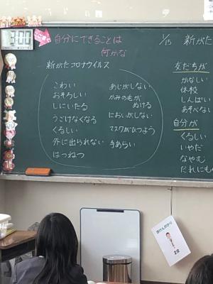 既に授業を終えた3年海組に続き、本日は、2年空組が授業を行いました。新型コロナウィルス感染症について、どのようなことを知っているか?かからないためには?もし周りにかかったお友達がいたら?など、それぞれに話し合いながら授業を進めていました。もし感染したらどのような気持ちになるのか、友だちと自分の2つの側面から考えるなど工夫した内容でした。子どもたちは、自分事と捉え、真剣に授業に参加していたのが印象的でした。誰もがかかる可能性がある感染症、差別や偏見をもつのも、もたれるのも嫌ですよね。