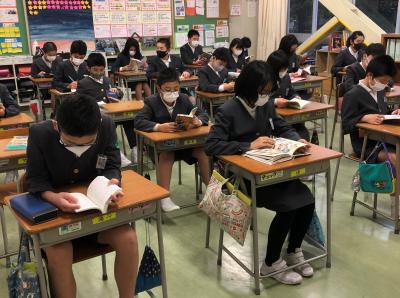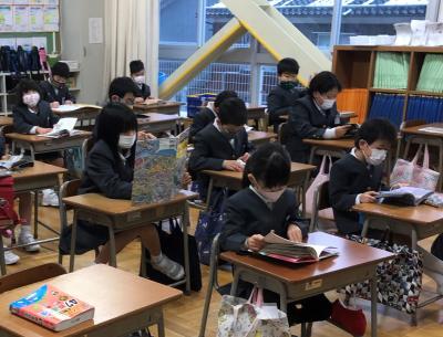 本校では、登校後の8:15~8:25の10分間を朝読書の時間にあてています。家庭での子どもたちは、スマホ・タブレット、動画配信サービスの視聴など余暇の時間の過ごし方が変化しています。それに伴って読書量の低下も否めません。こんな時代だからこそ、本校では、読書を推奨しています。朝読書では、自分が前日までに読みたい本を準備し、朝登校し朝読書の時間10分間集中して読書をします。各教室とも年度当初は、ざわつきもありましたが、今ではしっかりと読書をする習慣が定着しています。本に親しむことで脳の発達にも好影響をあたえてくれます。