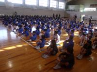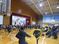 2月5日(金)の5限目に校内なわとび集会が開かれました。この集会は、冬に練習してきたなわとびの総まとめとして1人2つの技に挑戦し、全校で頑張りを認め合う会です。3つの技から2つの技を選び挑戦します。設定時間を2種目とも跳べたらクリアーになります。各学年のチャレンジ種目は、低学年①前両足跳び30秒 ②後ろ跳び(20秒)③前かけ足跳び(30秒)、中学年①前かけ足跳び(1分)②前あや跳び(30秒)③前二重跳び(20秒)、高学年①前かけ足跳び(1分30秒)②前あや跳び(45秒)③前二重跳び(30秒)です。当日は、中学年→低学年→高学年の順で行いました。どの児童もクリアーできるように一生懸命跳んでいたのが印象的でした。みんな、とても頑張りましたね。