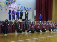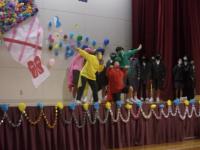 演目は、2年生 劇「スイミー」とダンス「やってみよう!」→1年生 劇「わらしべ長者」ダンス「Dynamite]→3年生 河井小学校クイズ選手権→ダンスクラブ発表→教職員の発表→4年・5年 TEAM2021鼓笛隊「ドラムマーチと校歌」→プレゼント渡し→6年生 TVショー「勉強戦隊 教科レンジャー ~笑いで感謝を届ける~」→閉会行事→校長先生のお話という内容でした。