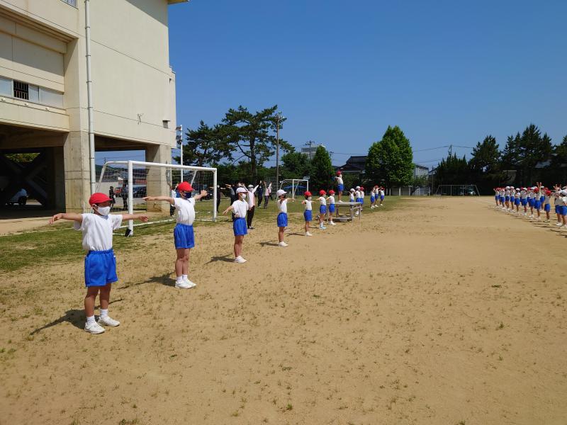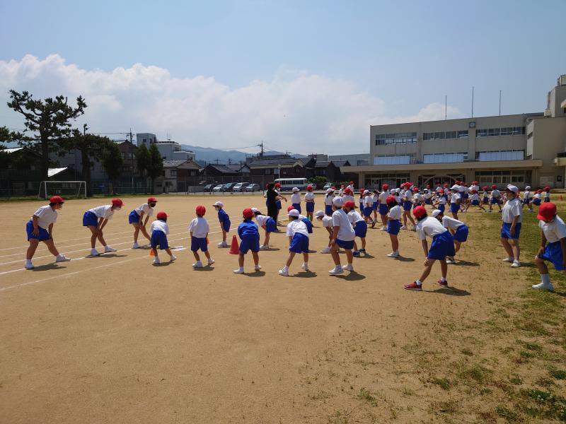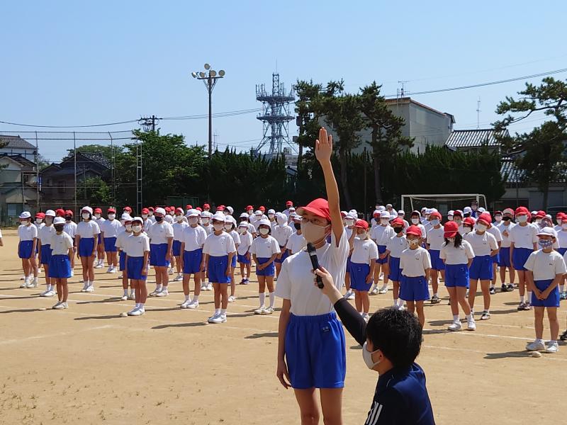 10日(木)に、河井小スポーツフェスタを実施しました。開会式では、校長先生のお話に続いて、児童代表の宣誓や体育委員会による体操が行われました。フェスタのスタートにふさわしい、気持ちのこもった宣誓、そして元気な体操の姿でした。次に、競技に入りましたが、児童は、自分の記録を伸ばすことや友達をしっかり応援すること、下学年をリードし高学年としての役割を果たすことなど、それぞれの目標に向かって一生懸命頑張っていました。特に、高学年の児童は、計測の補助やボール拾い、自分が担当するグループの誘導、競技の演示、水分補給の指示など、自分たちで考え、本当によく動いていました。暑い日となりましたが、全校でスポーツに取り組み、楽しみ、挑戦し、応援し、河井小の輪を育んだ一日となりました。