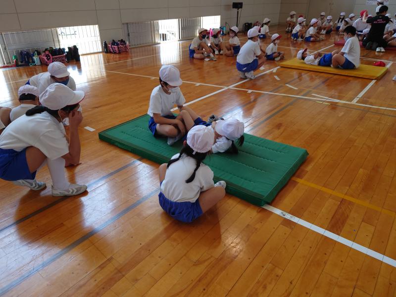 9日(水)の長休みと3限目を使って、たてわり仲良し会を行いました。「みんなでスポフェスを楽しもう」をテーマに、10日(木)に実施する河井小スポーツフェスタに向けて、運動を体験したり、高学年が低学年に運動の仕方を教えたりする中で、異学年での交流を深めることを目的としました。高学年の児童1人1人がリーダーとしての自覚をもって行動してくれたおかげで、どの学年の児童も、運動に親しみ、グループのメンバーの良さに触れ、楽しい時間を過ごすことができました。