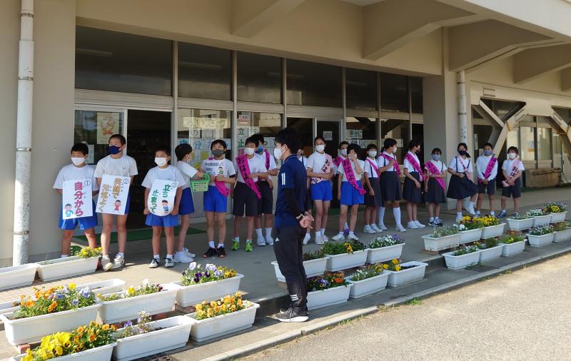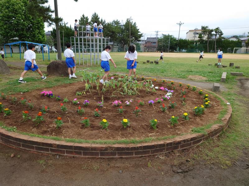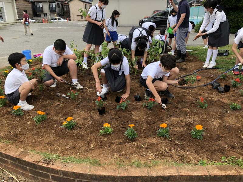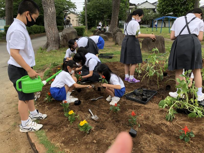 16日の昼休み、園芸飼育委員会の児童が、花壇に花を植えてくれました。花の色や大きさ、配置のバランスなどに気を付けながら、とてもきれいに植えることができました。学校のために、一生懸命汗を流す姿も、とても美しかったです。園芸飼育委員会の子どもたちは、放課後には、学校で飼っているうさぎのポンタのお世話もしていました。本当に、よくがんばってくれます。