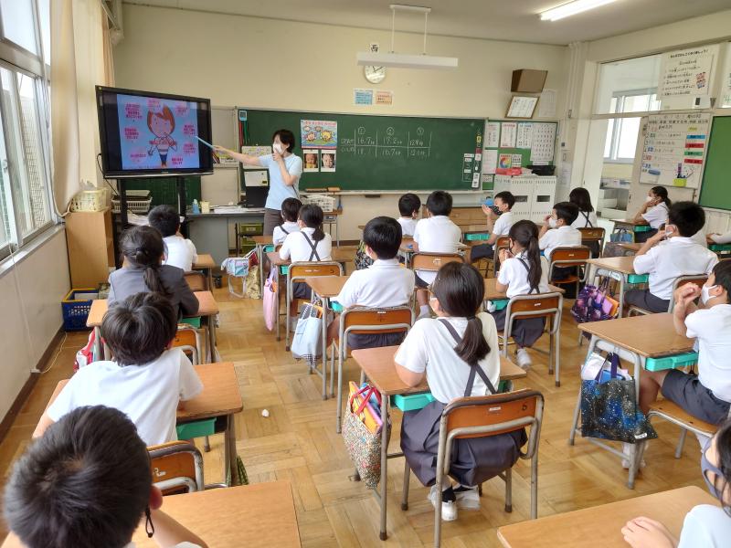 15日(火)に、4年海組で、養護教諭の中條先生から歯の健康についてのお話をしていただきました。歯を健康に保つとたくさんよいことがあること、また、ひじつきなど悪い姿勢がくせになっていると、あごがゆがみ、歯の健康にとってよくないことなど、これからの子供たちの成長にとってたくさんのことを教えていただきました。歯の健康については、他の学級でもお話していただきます。子どもたちから、学習したことについて聞いてみてください。