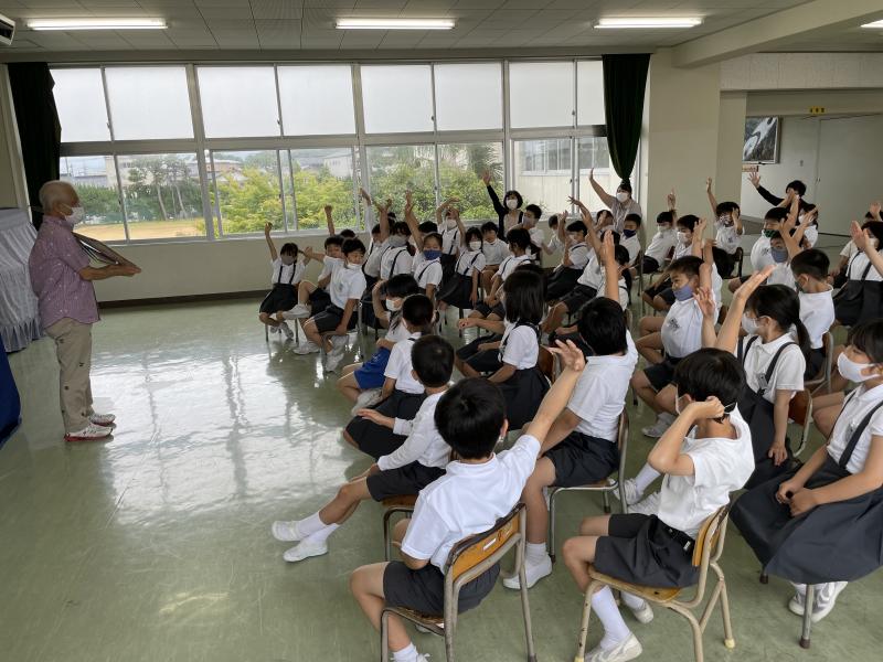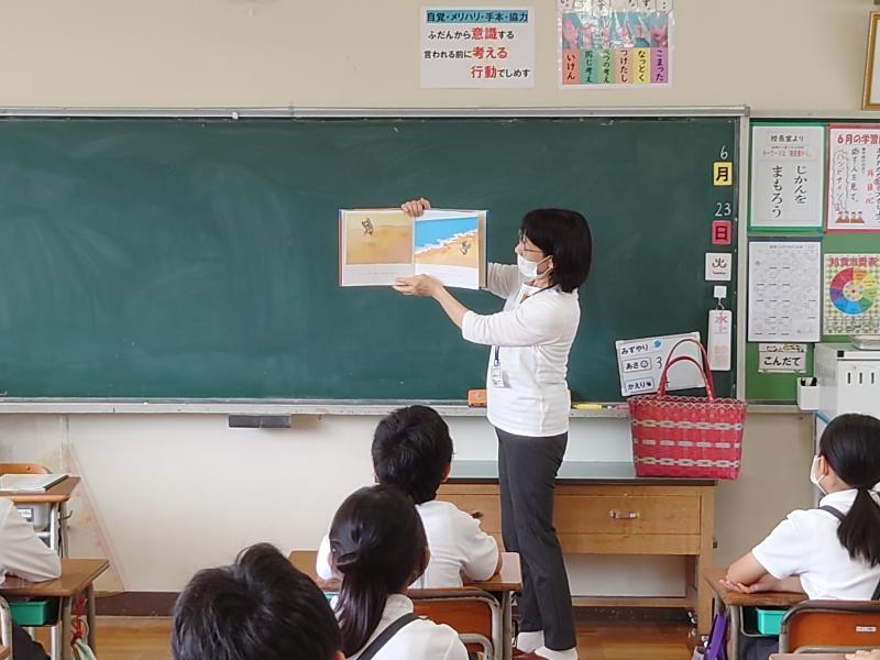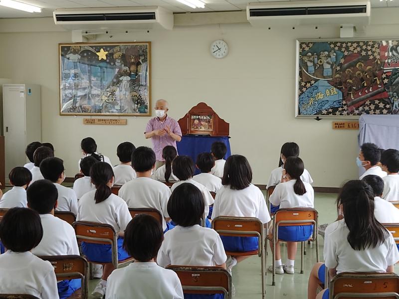 16日(水)の2・3限目に、のまりんさんのお話会を行いました。2限目は3年生、3限目は4年生対象に行いました。昨年は、残念ながら中止となりましたので、子どもたちは、とても楽しみにしていました。3年生には『へんてこおじさん』『しょうじきこぞうさん』『やまんばと三人きょうだい』『まんまるまんまたんたかたん』のお話、4年には『ぼたもちばあさん』『めがねやとどろぼう』『やまんばと三人きょうだい』『まんまるまんまたんたかたん』のお話をしていただきました。のまりんさんの紙芝居に、子どもも大人も魅了され、本当に楽しい時間を過ごすことができました。のまりんさん、ありがとうございました。また、ぜひ、いらしてください。