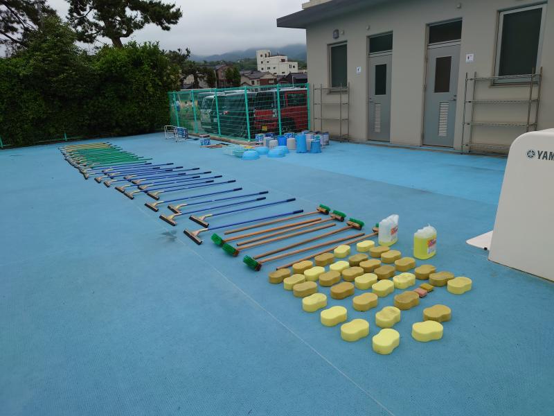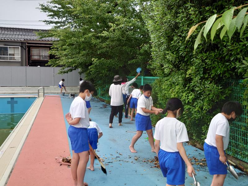 17日(木)に、5・6年生がプール掃除を行いました。5年生は、プール周辺の溝や更衣室などの掃除を、6年生はプールの中の汚れを落としました。プールの中も外も、1年間の間にひどく汚れていましたが、5・6年生の活躍でとてもきれいになりました。5・6年生が、自分の仕事が終わっても、進んで次の仕事を見付けて働く姿を見ると、学校のために、高い意識で頑張ってくれていることがよく伝わってきました。掃除のあとの片付けも、プールと同じようにとてもきれいでした。5・6年生のみなさん、ありがとうございました。今年も、気持ちよくプールでの学習を実施することができます。