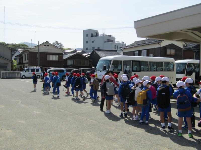 初めての遠足の1年生はしっかりと注意を聞いています。