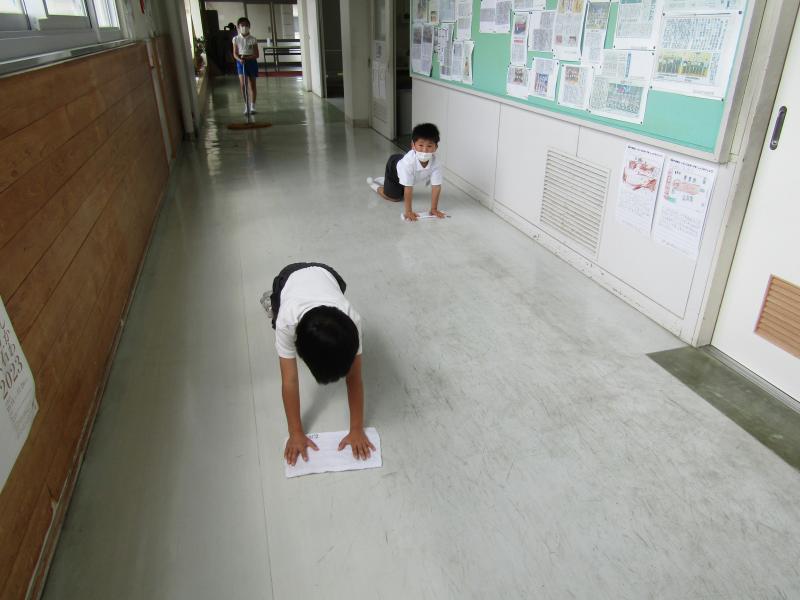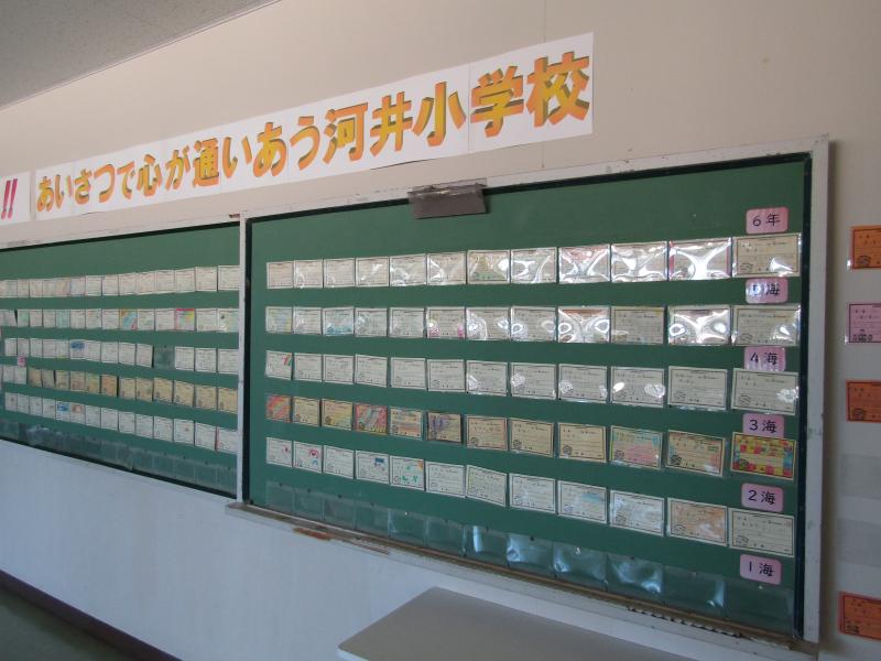 児童玄関に「かがやく河井っ子」が掲示されています。