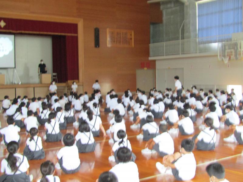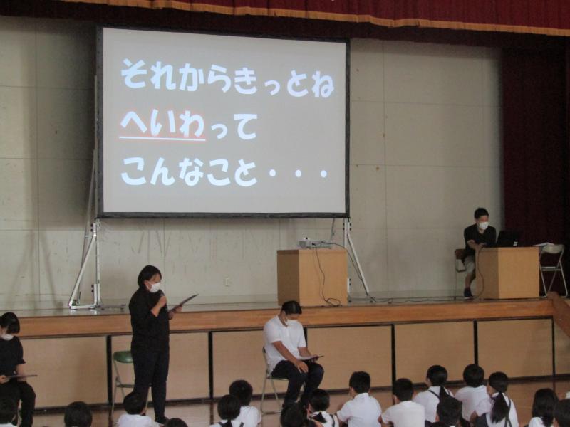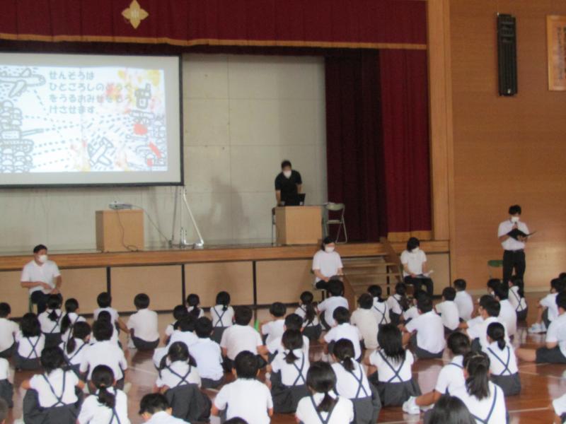 8月5日、全校集会で「平和」ついて学びました。