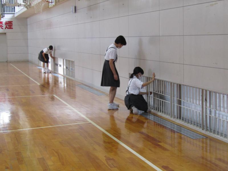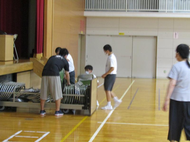 6年生が、窓を閉めたり、椅子を片付けたりします。
