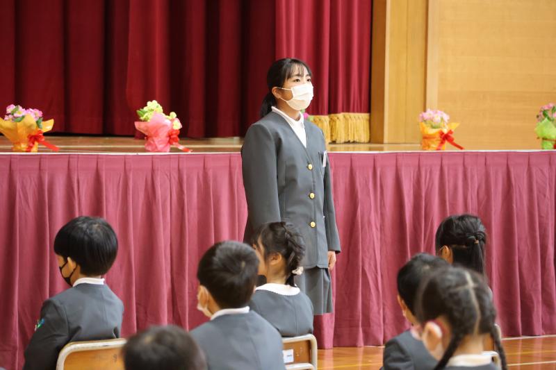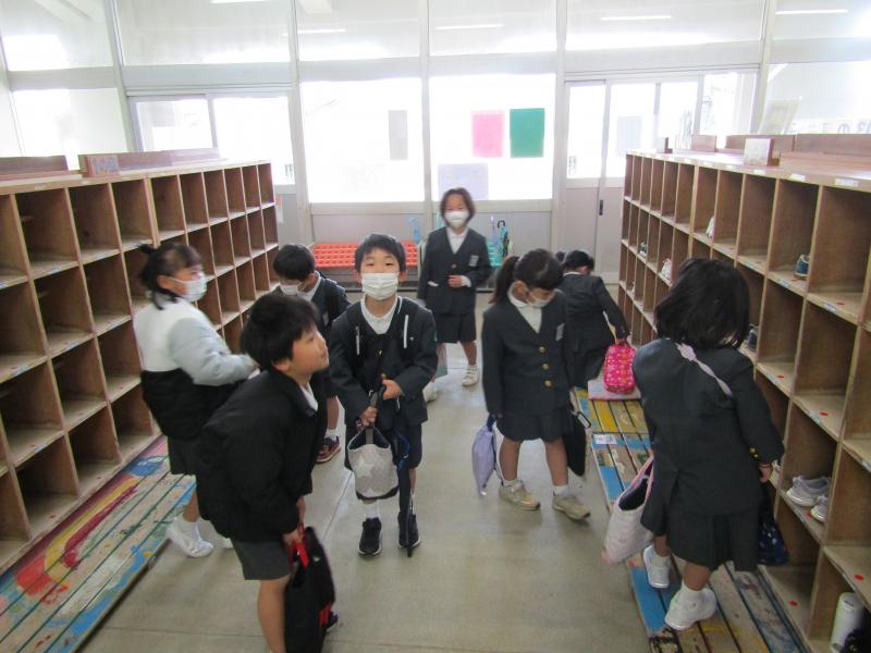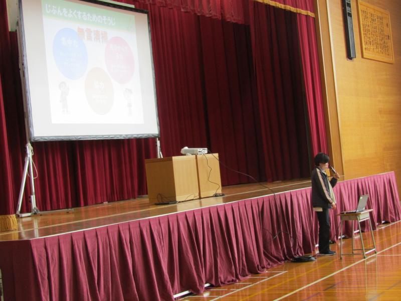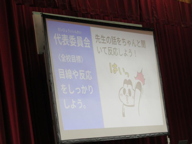 1年生が河井小金管鼓隊の演奏を初めて聞く日です。