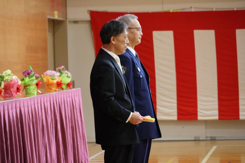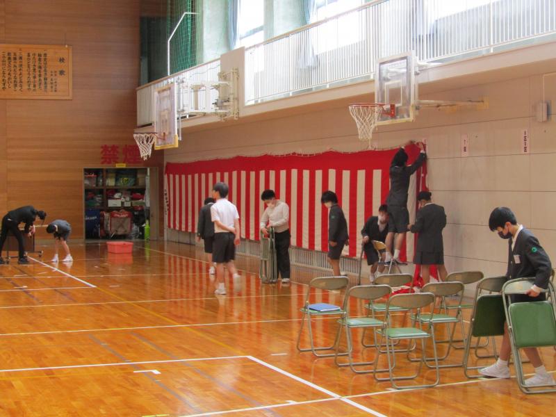 体育館で明日の1年生を向ける会に向けて金管鼓隊の練習がありました。