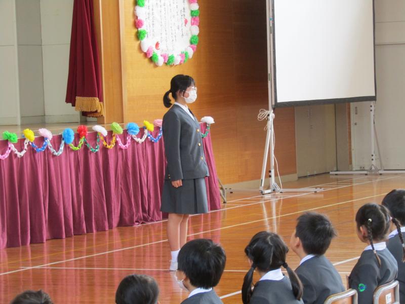 1年生が河井小金管鼓隊の演奏を初めて聞く日です。