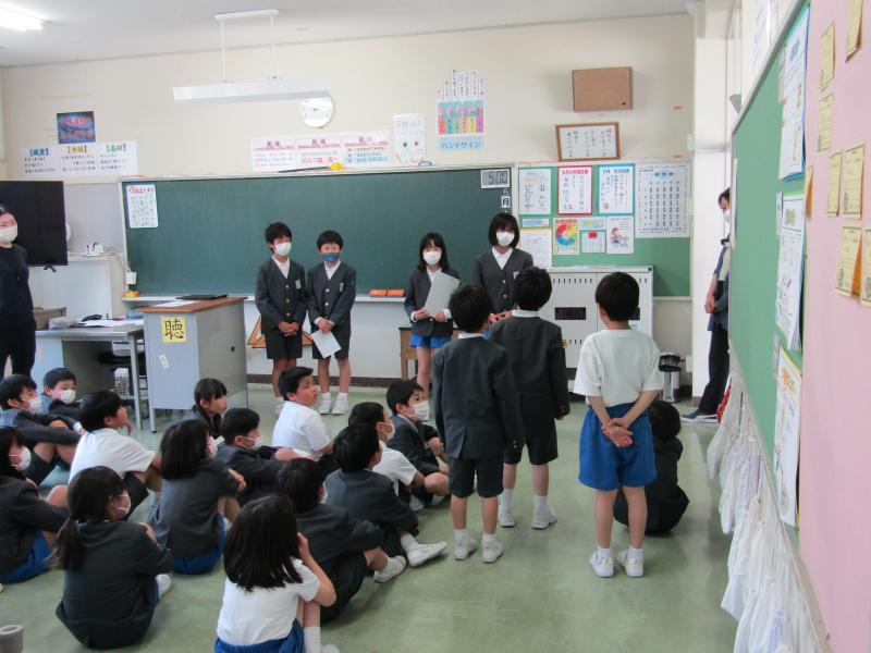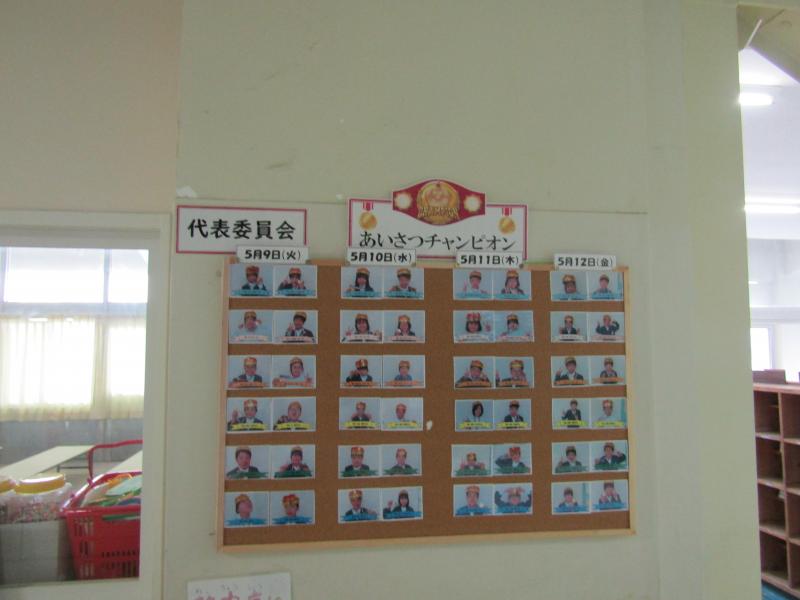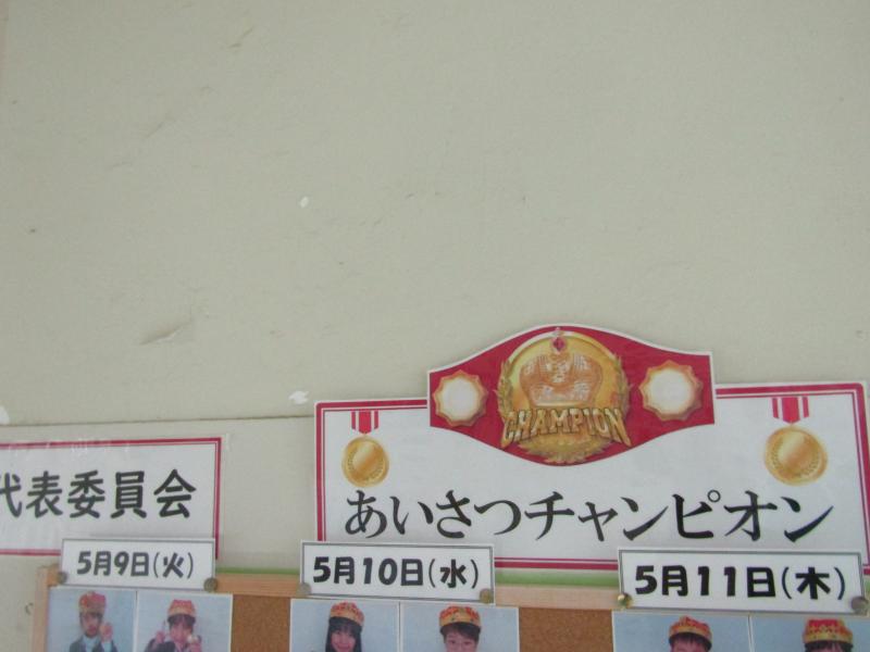 先週のあいさつ運動であいさつチャンピオンが選ばれました。
