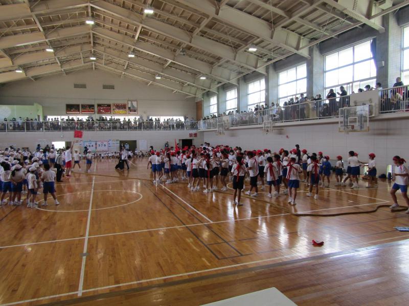15日の昼休みです。ピロティで高学年が遊んでいます。