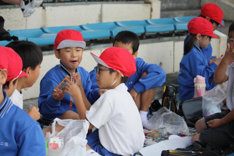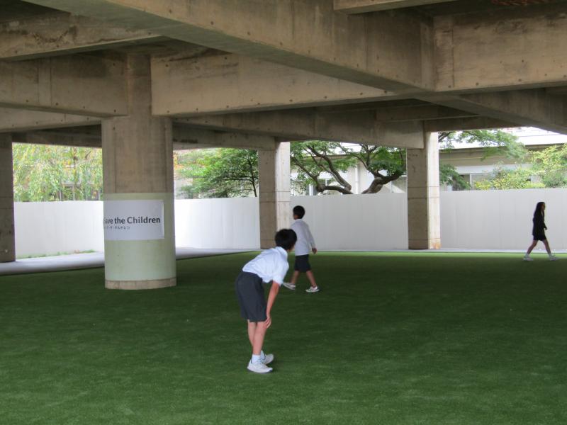 15日の昼休みです。ピロティで高学年が遊んでいます。