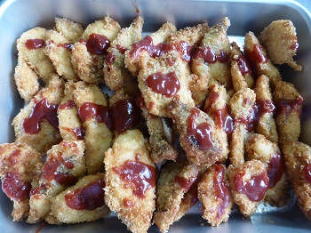 420食分のタラを、調理員さんは手際よく揚げていきます絵文字:重要