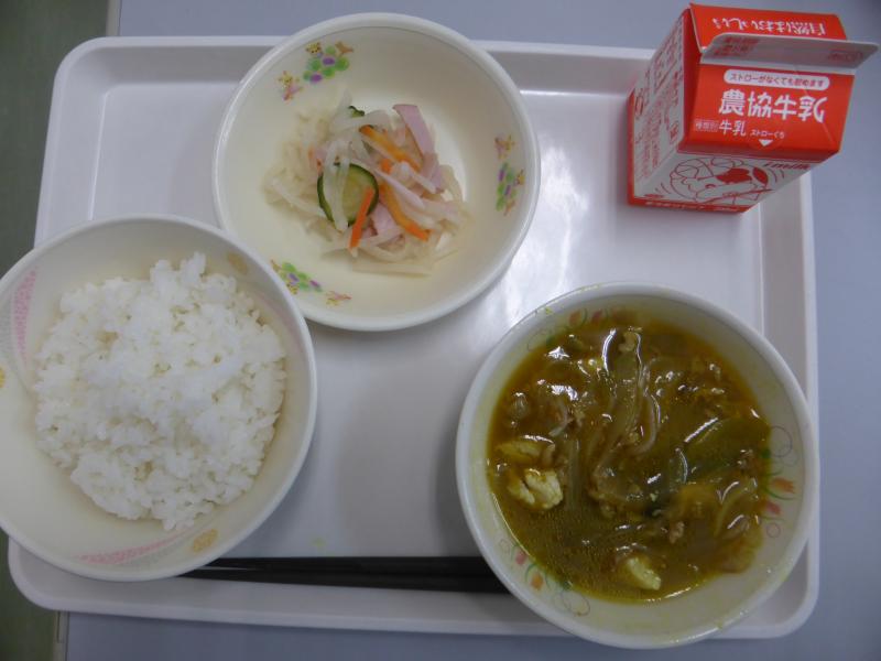 *中学年の量です。本日のクリームシチューは精肉屋さんから抗原性鶏インフルエンザの影響もあり、鶏肉の