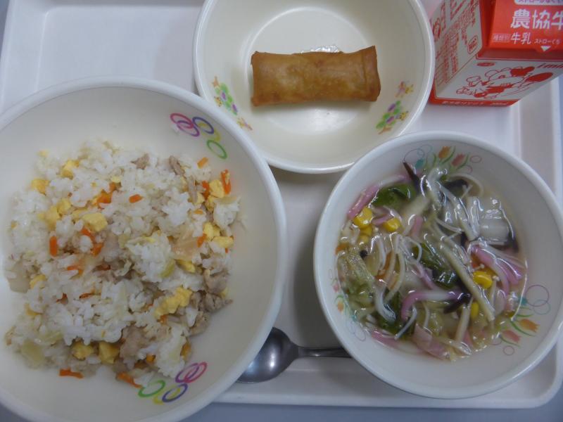 欠席児童がいますが、チャーハンが余った場合はスープをかけてスープチャーハンにできるようにしました。