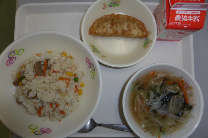 2学期も今週で終わります。前半は和食、明日は中華、残り2回は洋食になります。今日は卵、枝豆、豚肉のたんぱく質が全ての献立に入っています。アレルギーの児童はウィンナーに代替食になります。