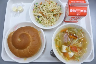ミルクロール、イタリアンスパゲティ、かみかみサラダ、牛乳