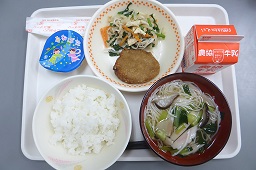 ごはん、そうめん汁、ミンチカツ、五目なます、七夕ゼリー、牛乳