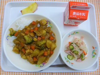 今日の給食がカレーと知ると「やったね!」と喜ぶ児童がたくさんいました