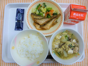 「骨に気をつけてね!」というと何人かの児童から「骨大好きだから大丈夫!」という回答も