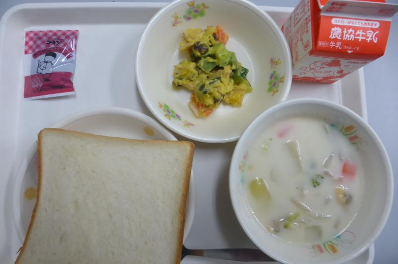 3日目は福井県給食です。福井県ではカツ丼=ソースカツ丼が主流です。カツが主役なので、柔らかい肉質の豚肉を