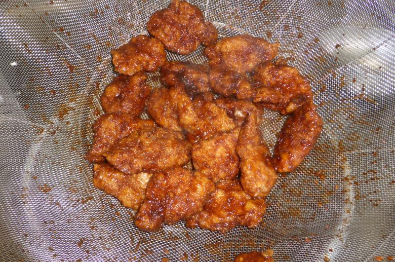 給食盛り付けまで時間があく為、余分なソースを落として各クラス毎に盛り付けしました。